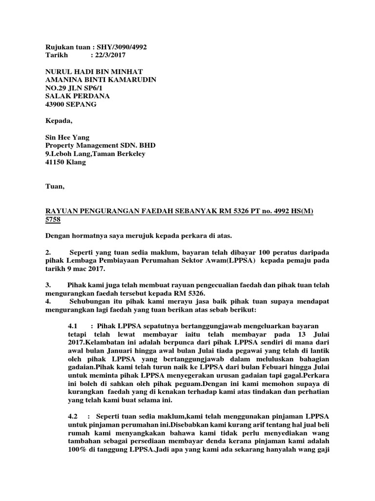 Contoh surat rasmi permohonan pinjaman. Surat undangan adalah sebuah surat yang dikeluarkan baik oleh pribadi maupun lembaga atau perusahaan yang ditujukan kepada pihak yang bersangkutan dengan isi untuk mengundang mereka agar hadir pada acara yang dibuat. Saya juga memohon supaya bayaran pinjaman dikurangkan sehingga situasi pendapatan saya stabil. Documents similar to contoh surat rayuan pengurangan bayaran akpk. Contoh rayuan kurang bayaran hutang dibawah akan membantu anda sebagai rujukan. Contoh surat undangan rapat sekolah dengan orang tua. Beberapa contoh surat rayuan penalti cukai pendapatan terlengkap 2019. Tukar nama dan alamat anda dan masukkan butiran laun yang diperlukan sebelum anda hantar surat di bawah. Penangguhan bayaran ansuran anggaran cukai secara automatik bagi tempoh 1 april hingga 31 dis 2021 merupakan inisiatif kerajaan di bawah program strategik memperkasa rakyat dan ekonomi (pemerkasa) bagi merangsang semula sektor pelancongan dan peruncitan kepada pembayar. Berdasar maklumat yang tertera di atas, saya, schukz kievn weidefeller, no kad. Contoh surat rayuan bayaran ansuran cukai pendapatan. Surat rayuan biasanya digunakan untuk membuat permohonan buat kali kedua,terdapat beberapa jenis surat rayuan yang kerap digunakan untuk membuat permohonan seperti,rayuan memohon kursus,program,biasiswa dan perkerjaan. Sila ikut format di bawah dan sesuaikan dengan situasi semasa anda.